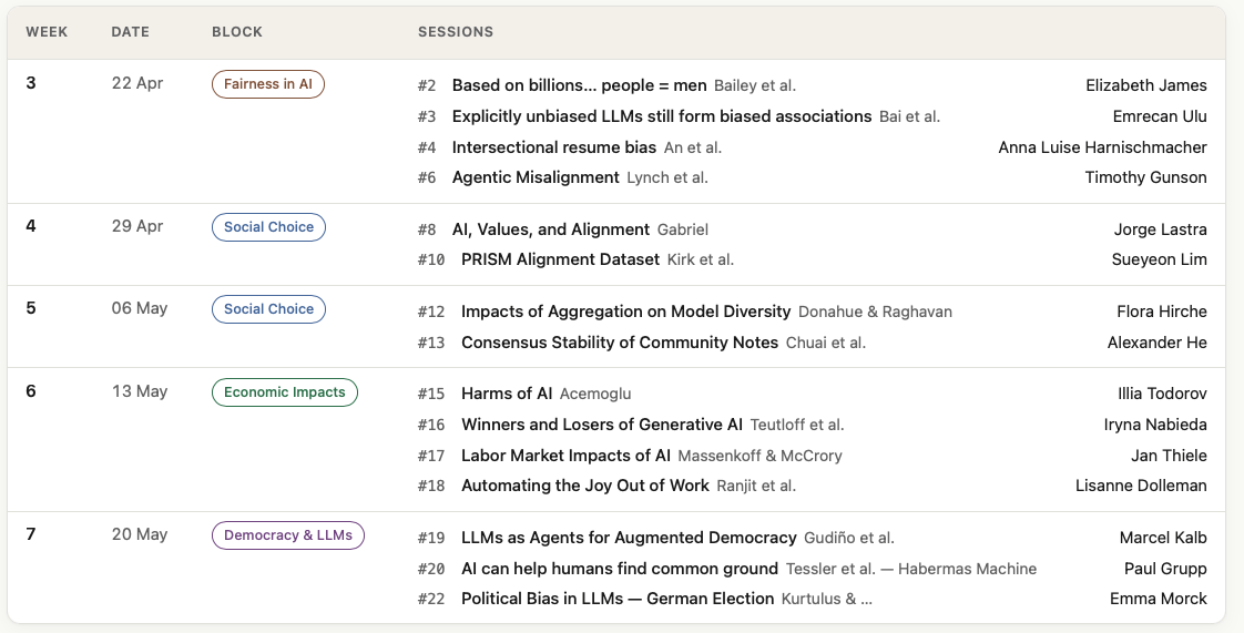 4 paper discussions for the next 5 weeks each