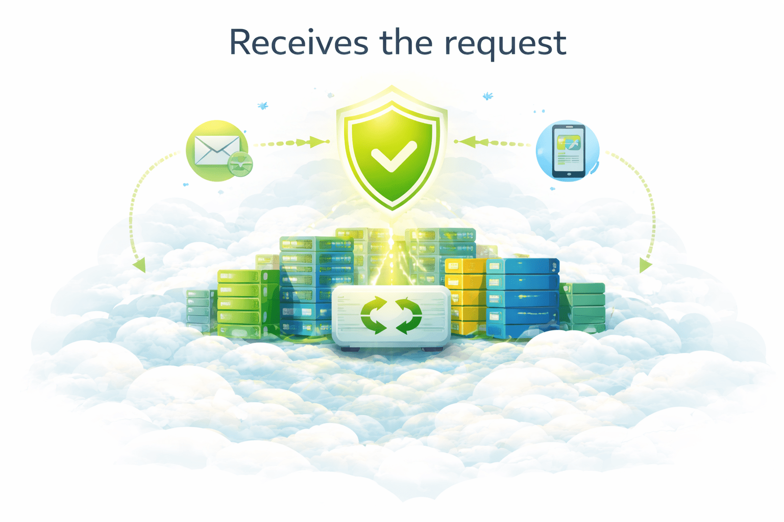 Receives the request