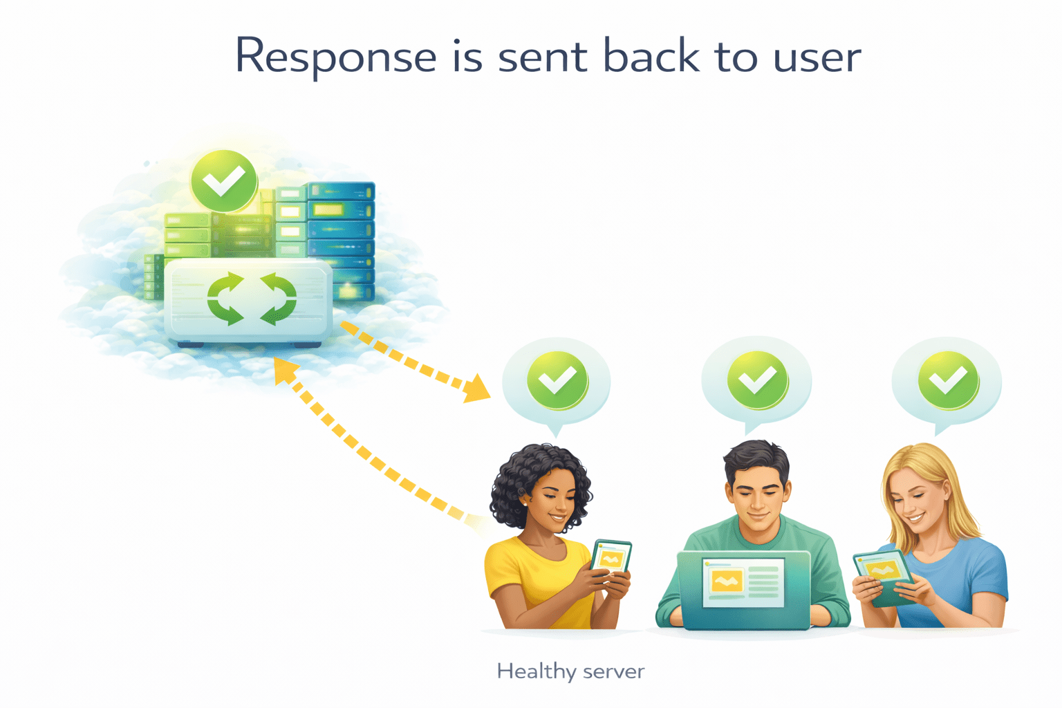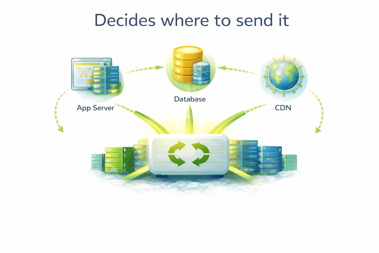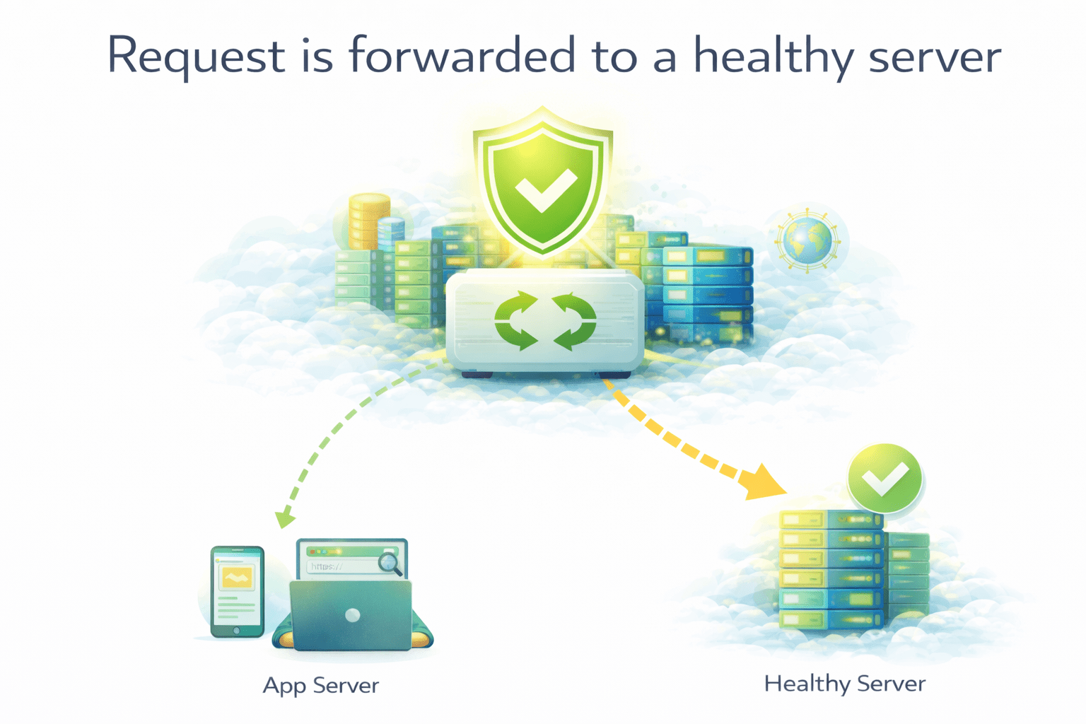 Sends traffic only to healthy (working) servers