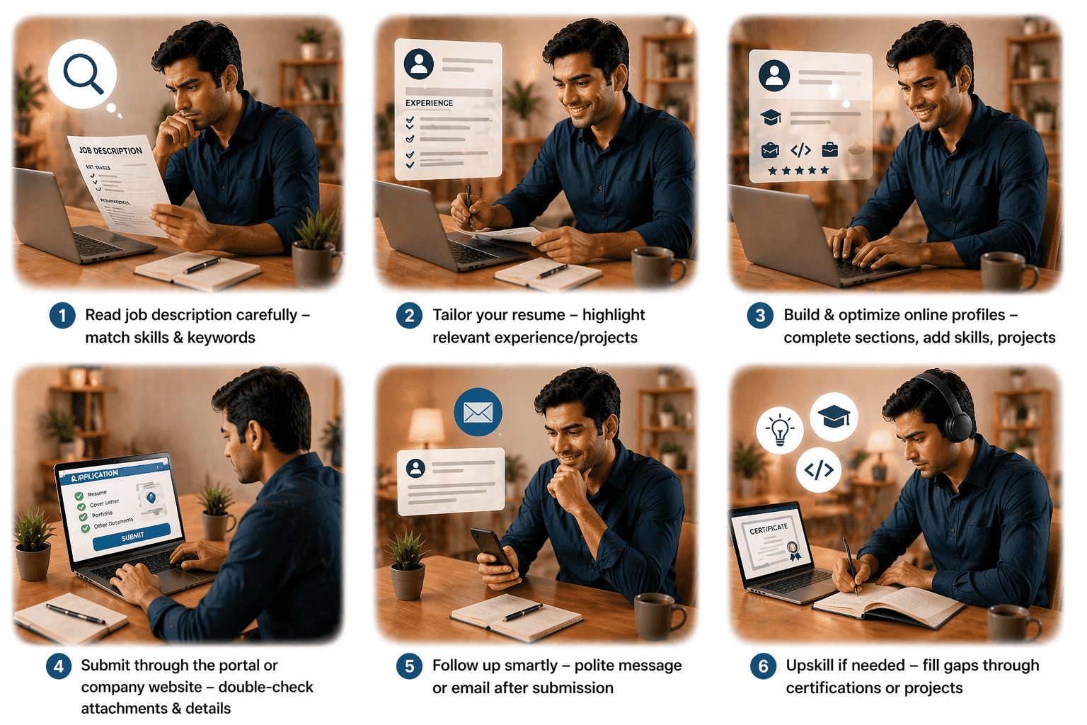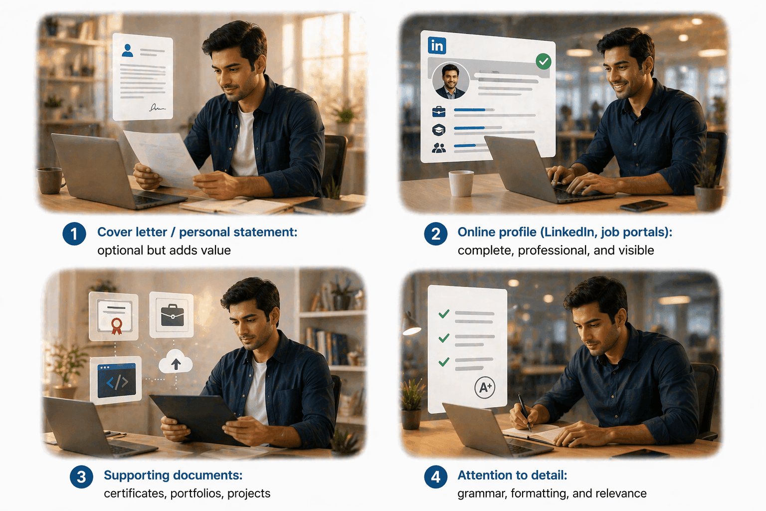 Online profile (LinkedIn, job portals): complete, professional, and visible