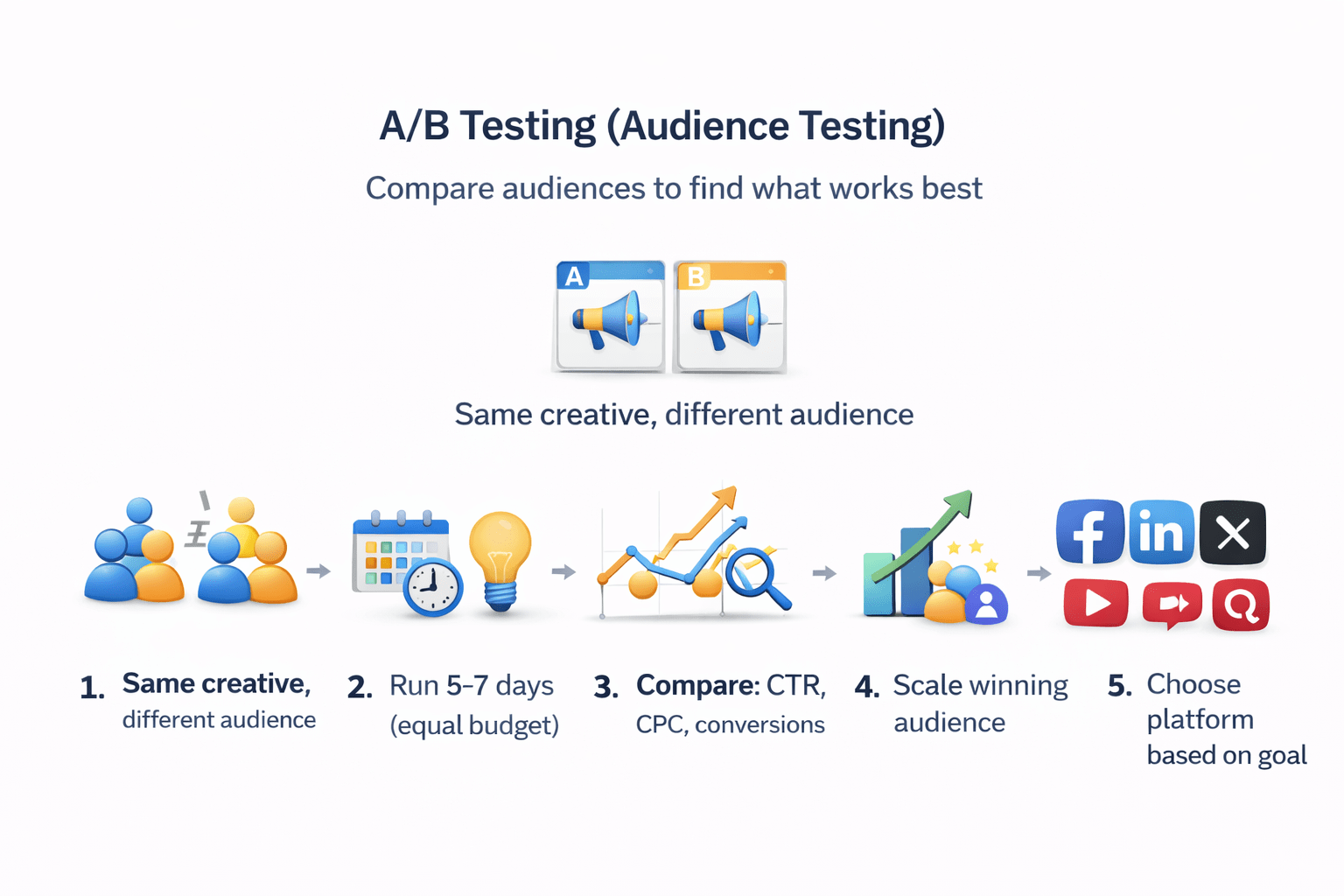 Run 5–7 days (equal budget)