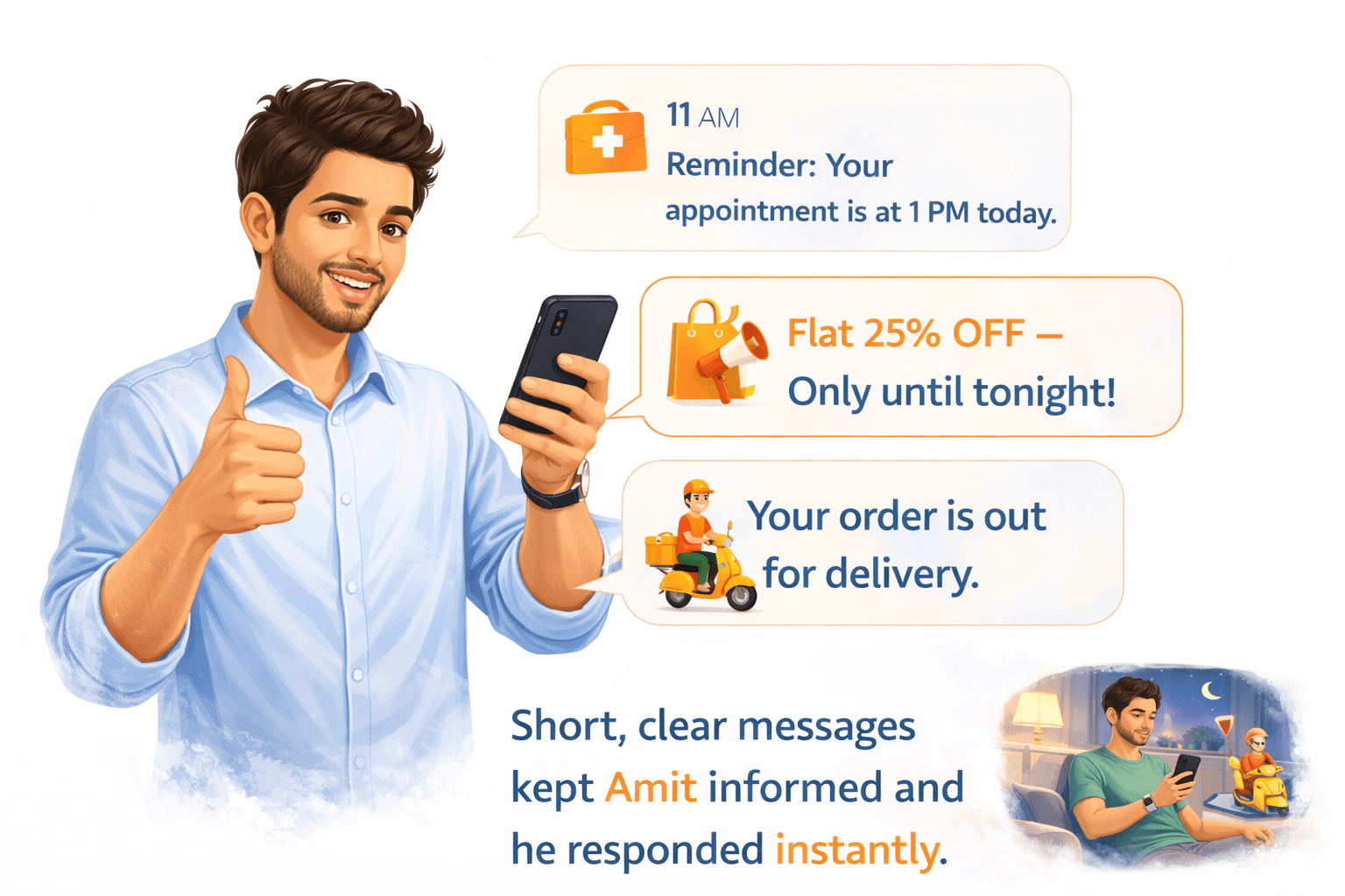 Later in the evening, he got another SMS from a shopping store: “Flat 25% OFF – Only