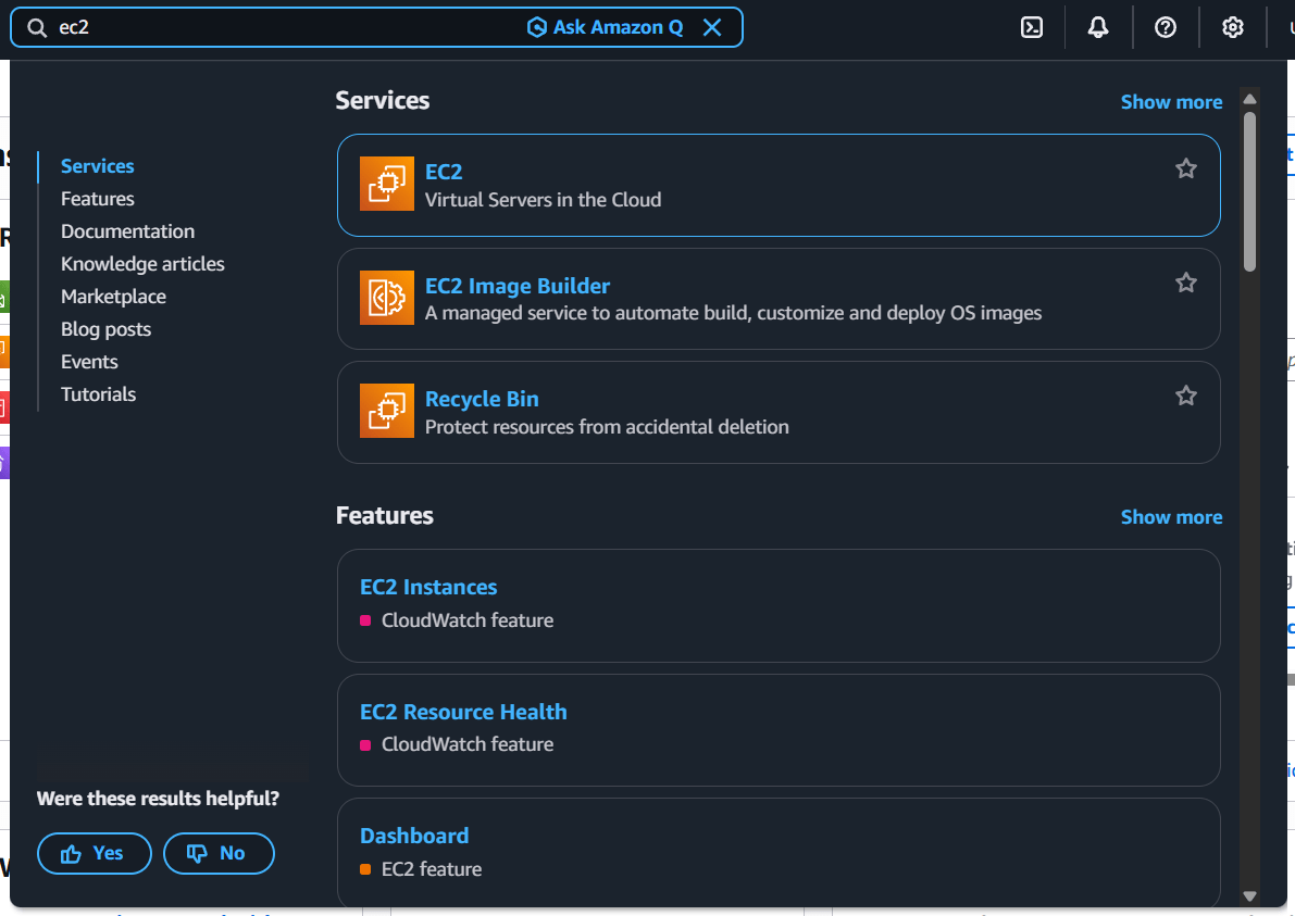 Search EC2 & Click to Launch Instance