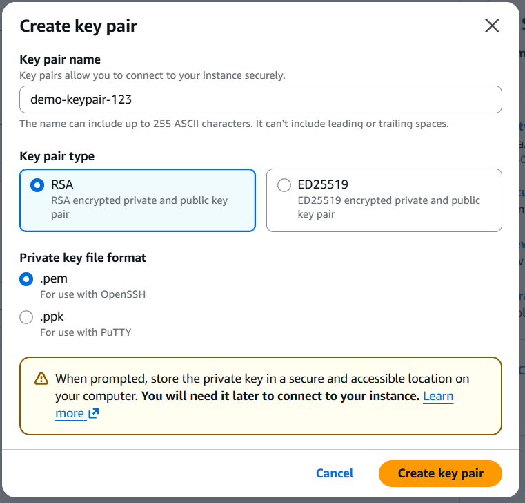 Linux → SSH key (.pem)