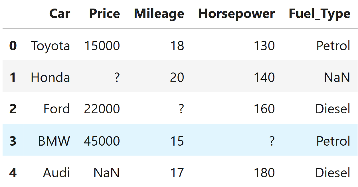 But in some datasets, missing values are written differently, like: