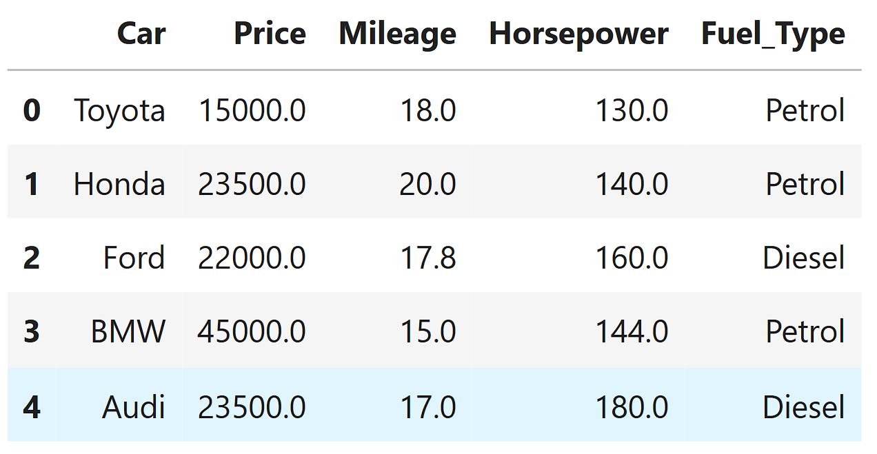If we fill Honda’s price with an average, it becomes a fake value.