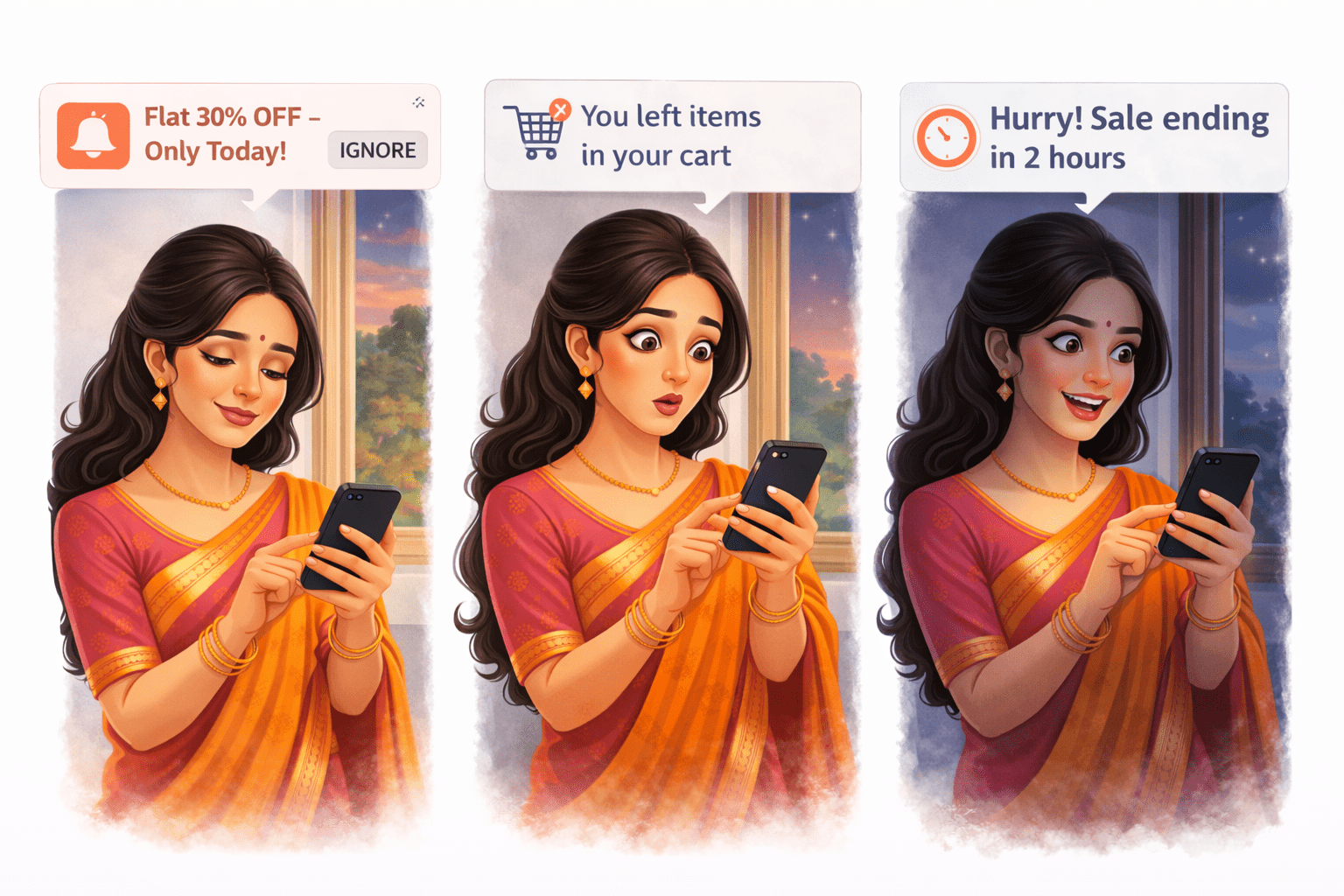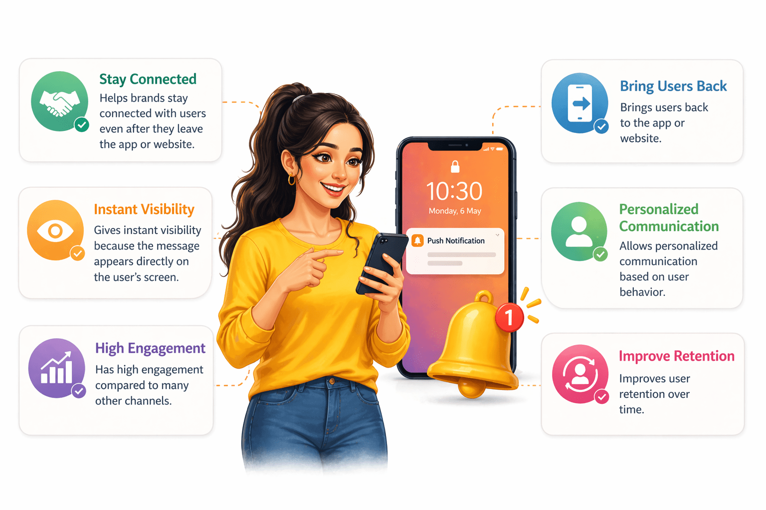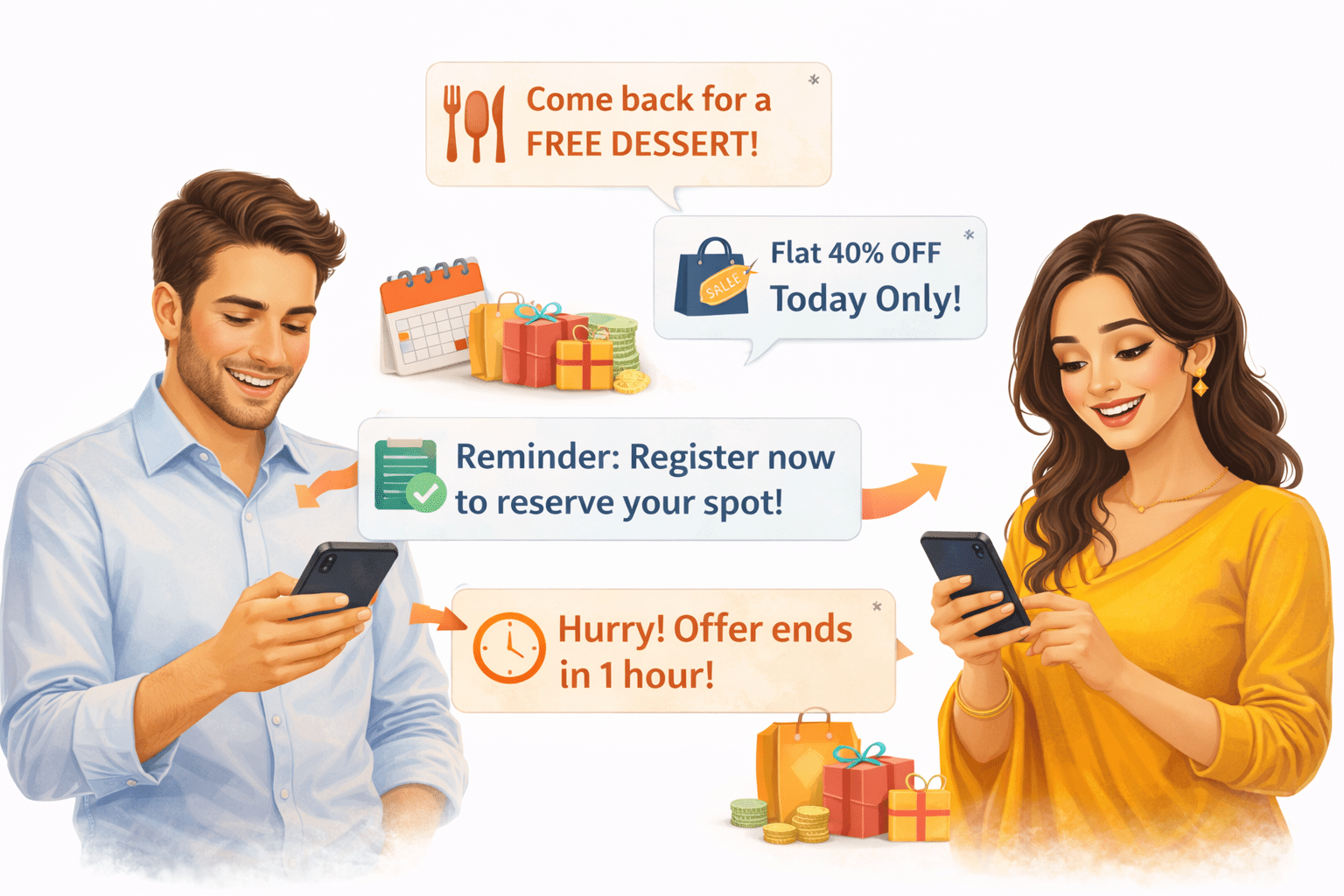 Instead of waiting for users to return, brands reach out directly with timely messages—offers, reminders, and urgency.