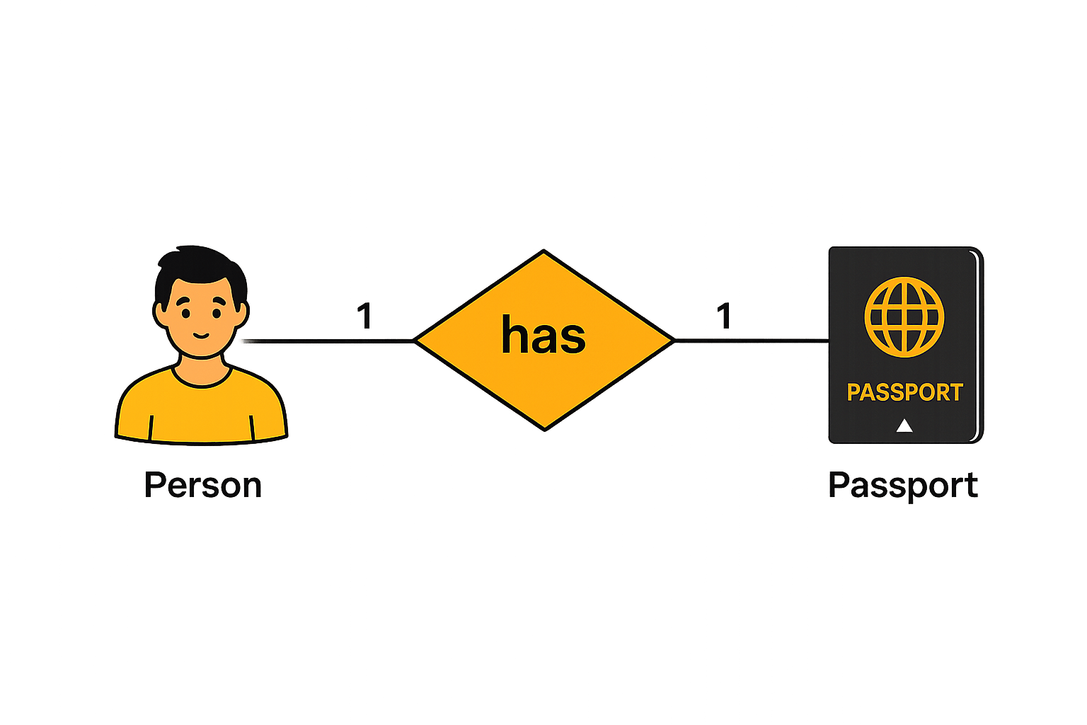 For example, If there are two entities ‘Person’ (Id, Name, Age, Address)and ‘Passport’(Passport_id, Passport_no). So, each person can have only one passport and each passport belongs to only one person.