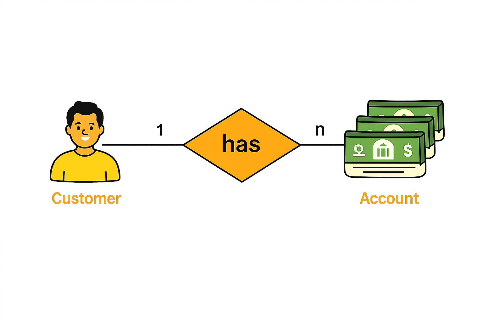 For example, If there are two entity type ‘Customer’ and ‘Account’ then each ‘Customer’ can have more than one ‘Account’ but each ‘Account’ is held by only one ‘Customer’.