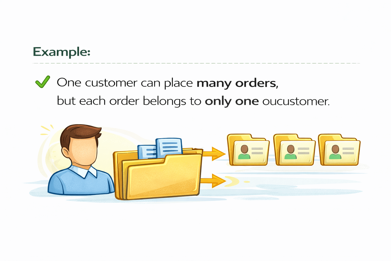 A one-to-many relationship means one record in a main table is related to multiple records in another table.