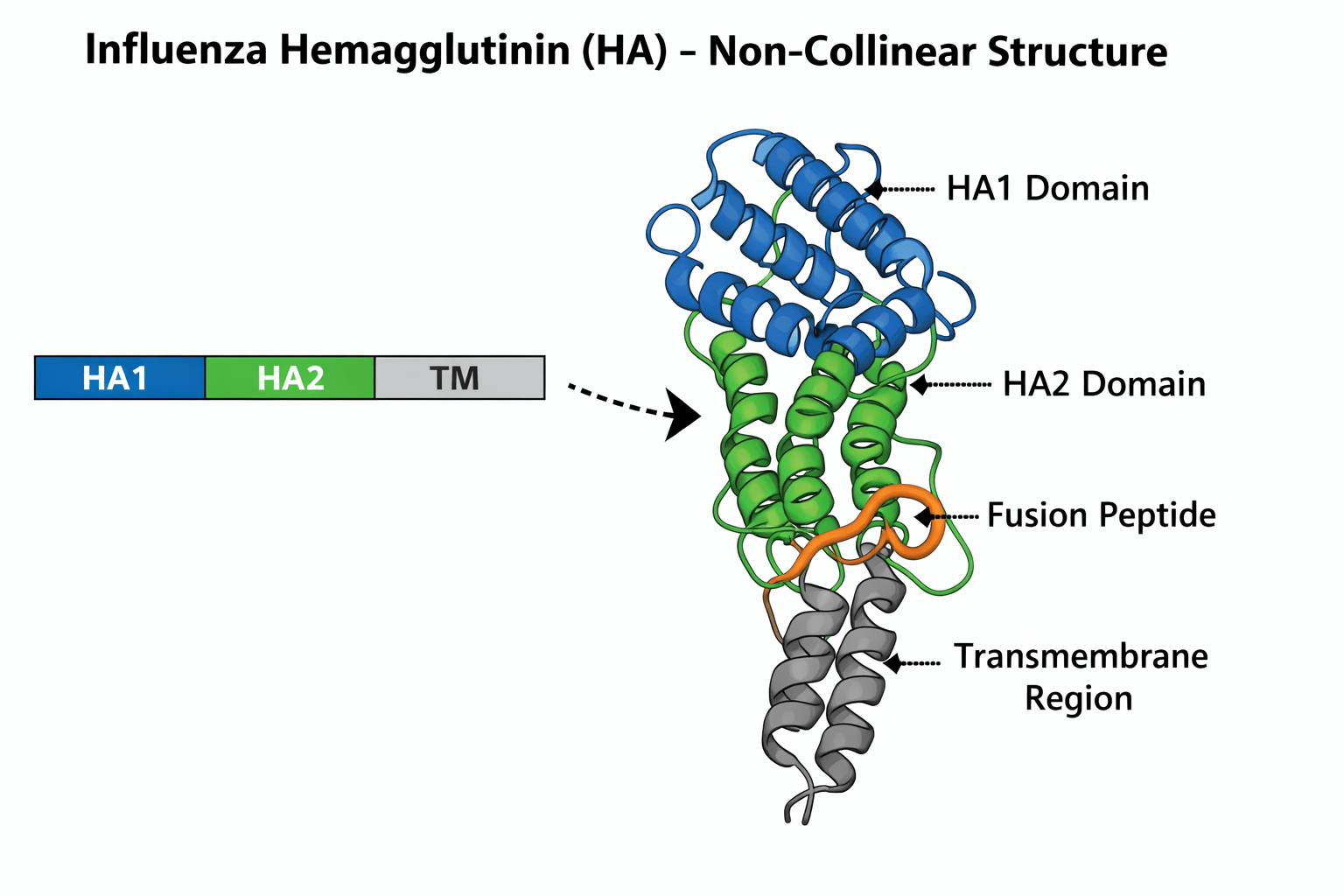 Mutations in HA1 (head) can affect HA2 (fusion machinery)