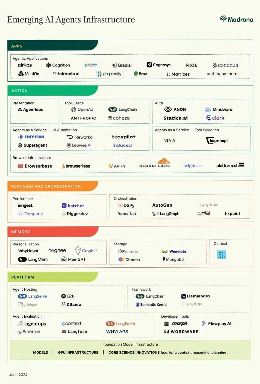 - Agent development framework:建構及架構agent的framework與程式庫。