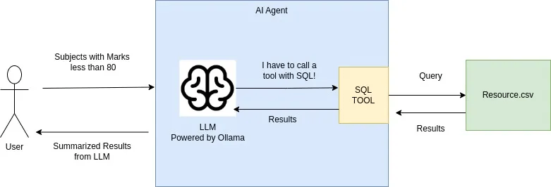 LLM 判斷:需要調用 querycsv,生成 SELECT AVG(marks) FROM df。