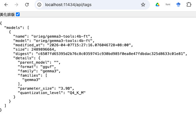 ollama pull orieg/gemma3-tools:4b-ft- 安裝ollama