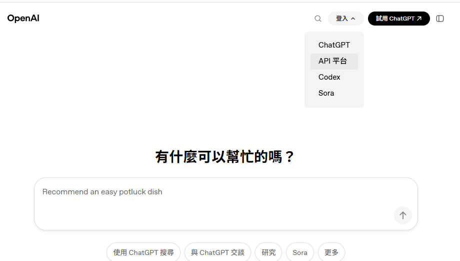 前往 https://openai.com/ 登入 或 註冊後登入