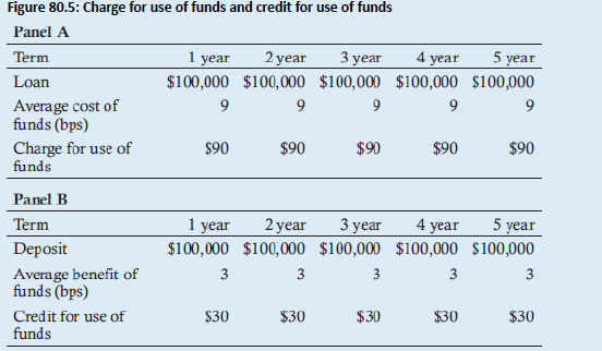 - Example (Calculating the credit for the liquidity benefit of deposits): Suppose the two banks described in the previous example, Bank MMM and Bank AVG, each have two $100,000 deposits with one-year and five-year terms. Using the same information provided in Figure 80.7, what should be the credit given to business units that acquire deposits with one-year and five-year terms, both prior to the crisis and currently, using the two approaches for cost of funding?
