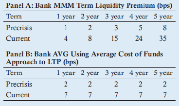 - The business unit for Bank AVG, using the average cost of funds approach for LTP, would give a credit prior to the crisis of $20 each for the one-year and five-year term deposits. Using current bps spreads, the business unit for Bank AVG would give a credit of $70 each for both deposits regardless of the term.
