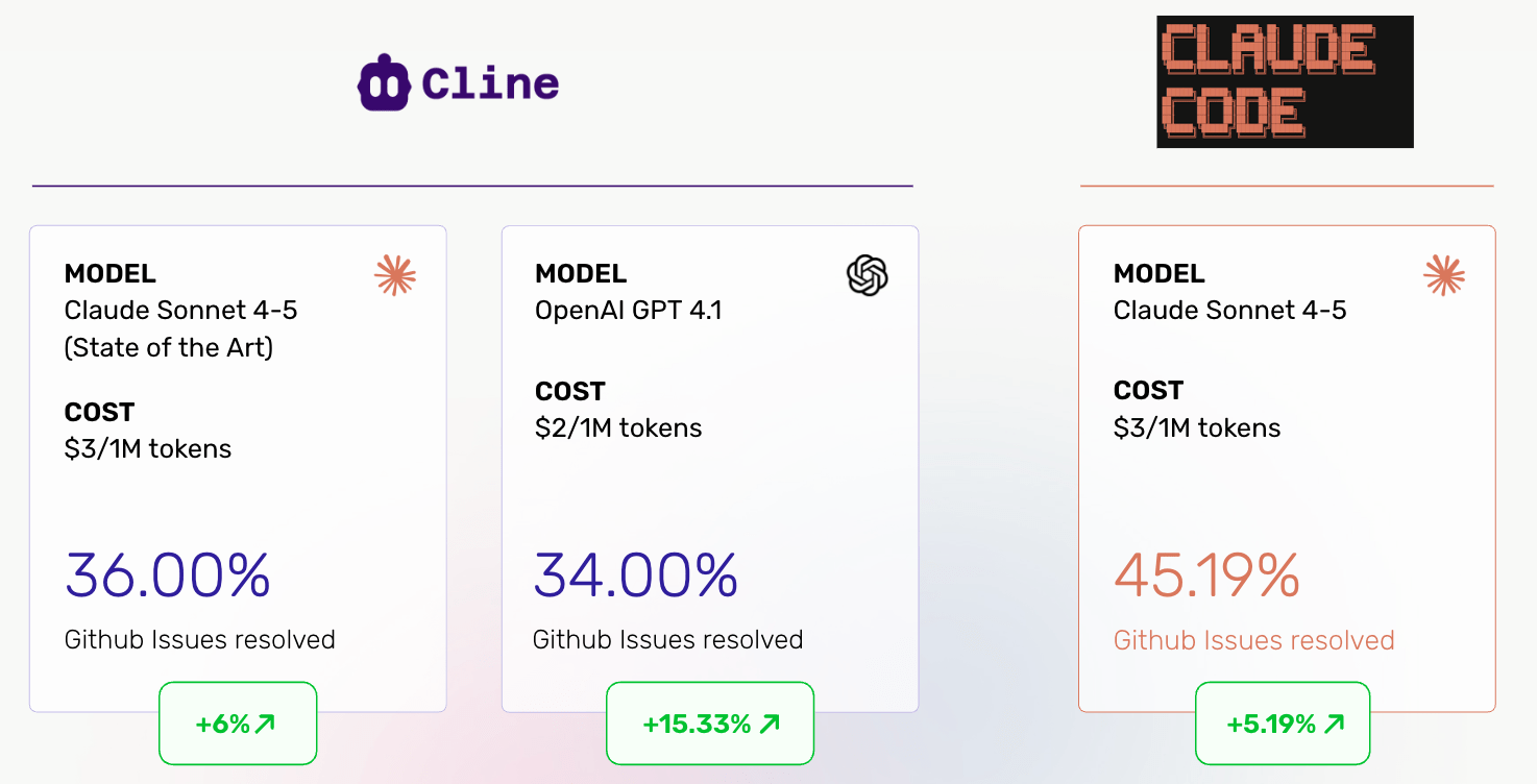 - SWE-Bench Lite: up to 11% improvement