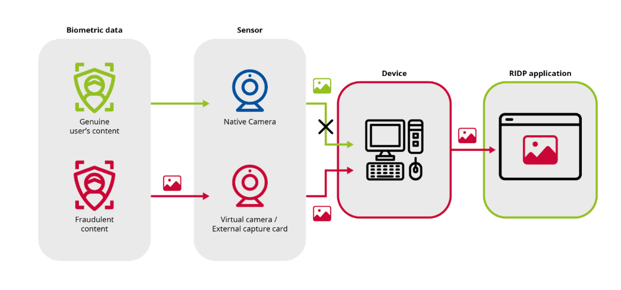 - Virtual camera detection — anti-virtual-device checks or metadata validation.
