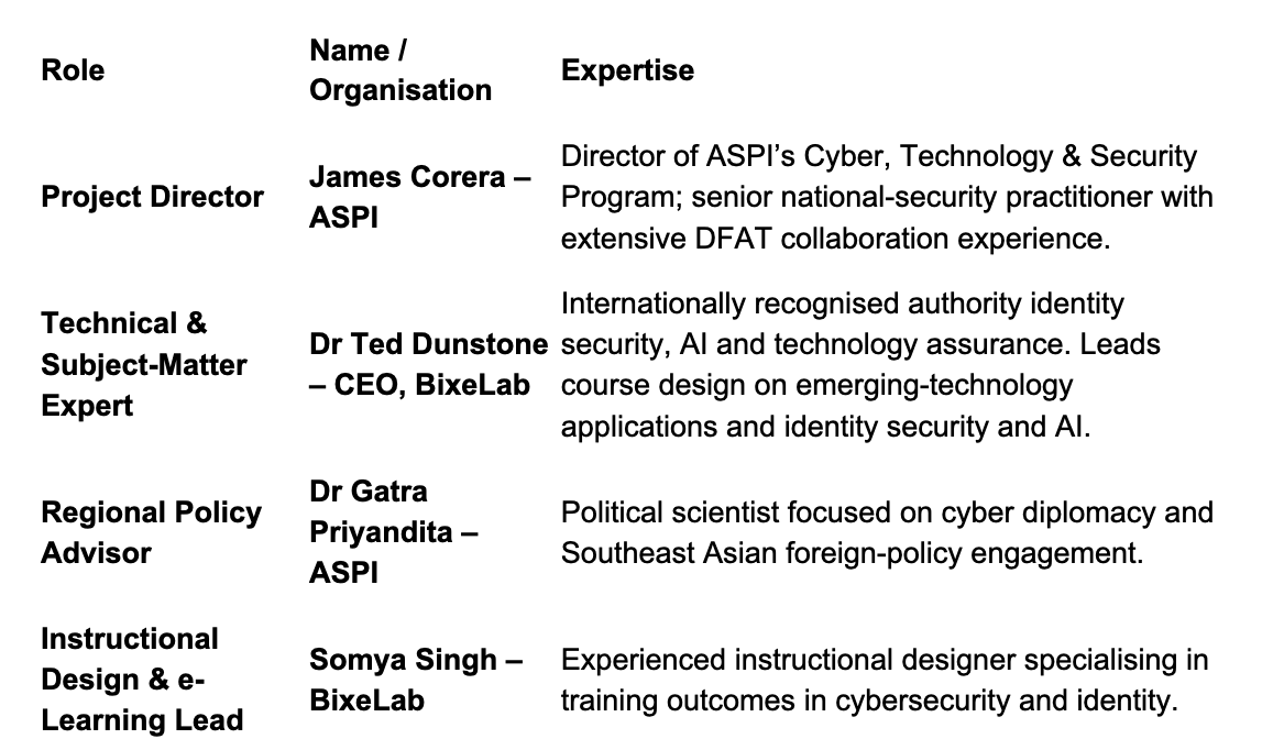 BixeLab is an internationally recognised leaders in security and identity assurance, AI, and technology-governance training. The team has delivered technical and policy-aligned training programs to a range of government and industry clients.